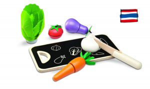 タイのwonderworld(ワンダーワールド)社が発売している、フェルトと木を組み合わせた5色の野菜セットです。ワンダーワールド社は、環境保全運動に力を入れている環境にやさしいブランドとして有名で、世界50ヵ国で愛用されている世界でも名高い木製玩具メーカーです。