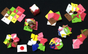 世界初のフェルトパズルは日本生まれ。フェルトなので、環境にやさしい素材です。特徴的なのは、縫わずハサミも必要ないこと。パズル感覚で自由自在に好きな形を手を使って組み立てていきます。組み方はひと通りしかないので、小さな子どもでも簡単にでき、また年齢に応じて複雑なドレスなどの大作を作ることも。
